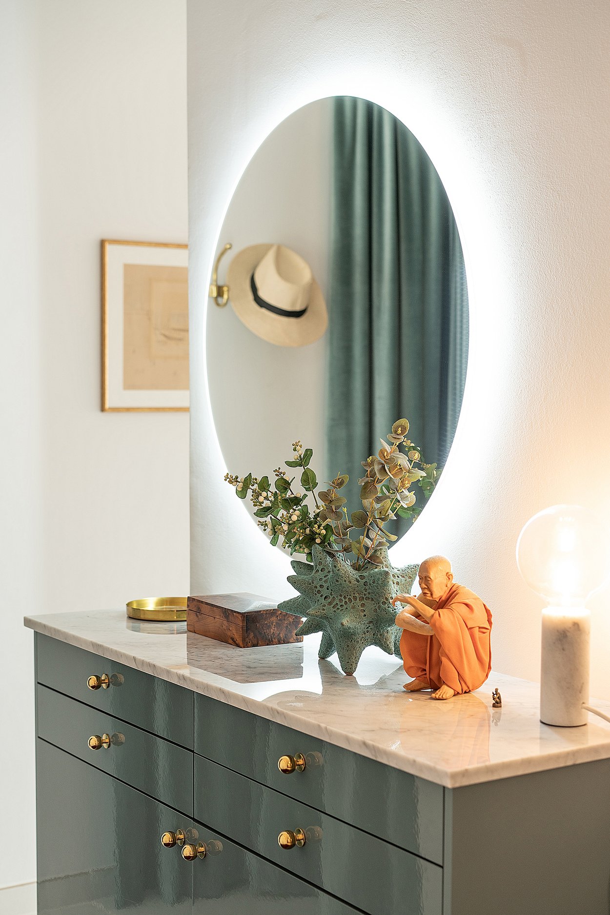 Dette er en bolig for den kresne. Hele leiligheten utstråler stilfull eleganse og kvalitet, og har et gjennomgående vakkert flislagt gulv fra 2017.
