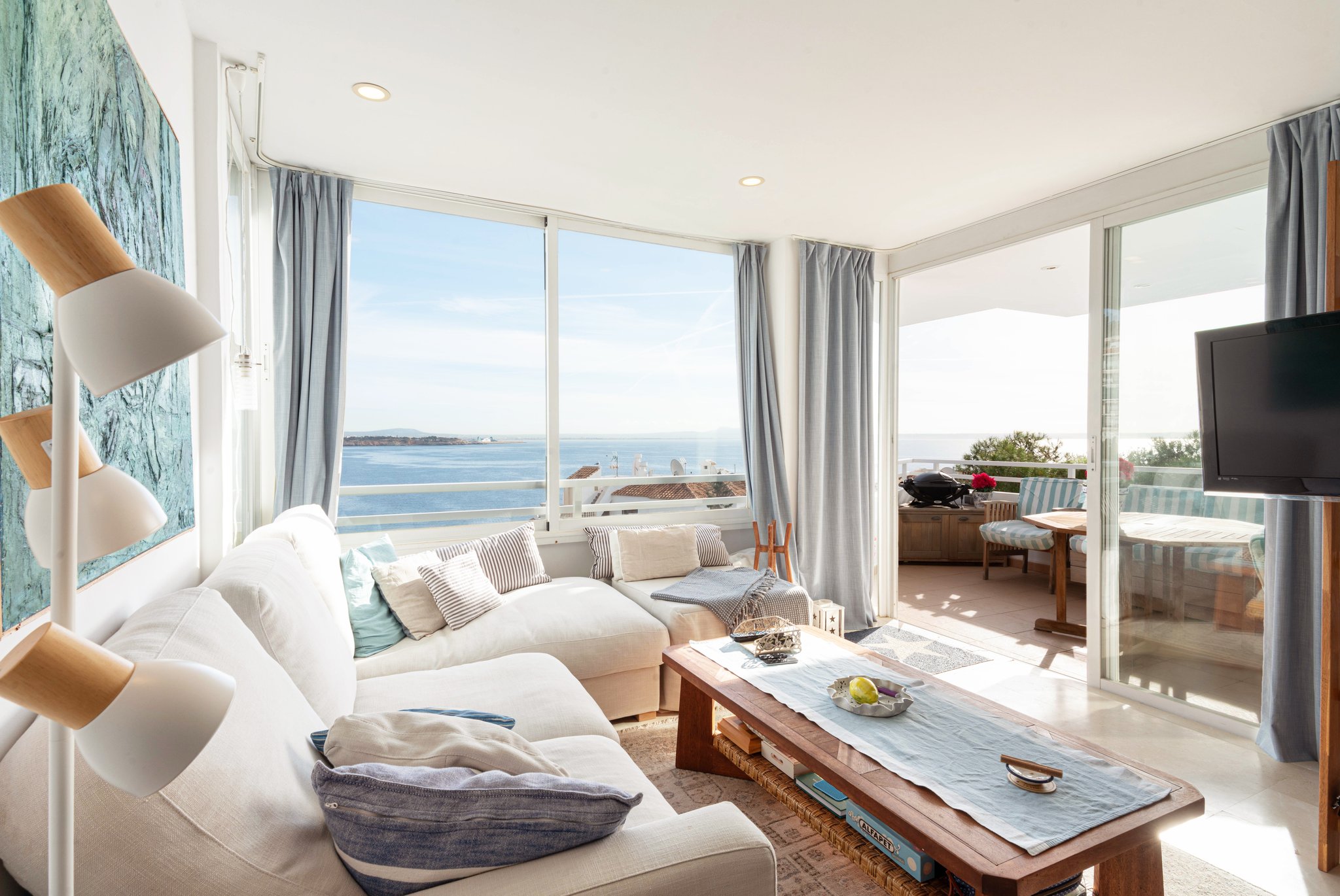 Denne vakkert renoverte og lyse leiligheten ligger rett overfor sandstranden i Illetas. Illetas har en uslåelig beliggenhet ved sjøen, bare noen minutter fra Palma, og er ideelt for deg som er ute etter et rolig område i nærheten av alle fasiliteter. Området har enestående havutsikt, krystallklart vann og ligger bare en kort kjøretur fra Puerto Portals Marina og den prestisjefylte golfbanen Bendinat.