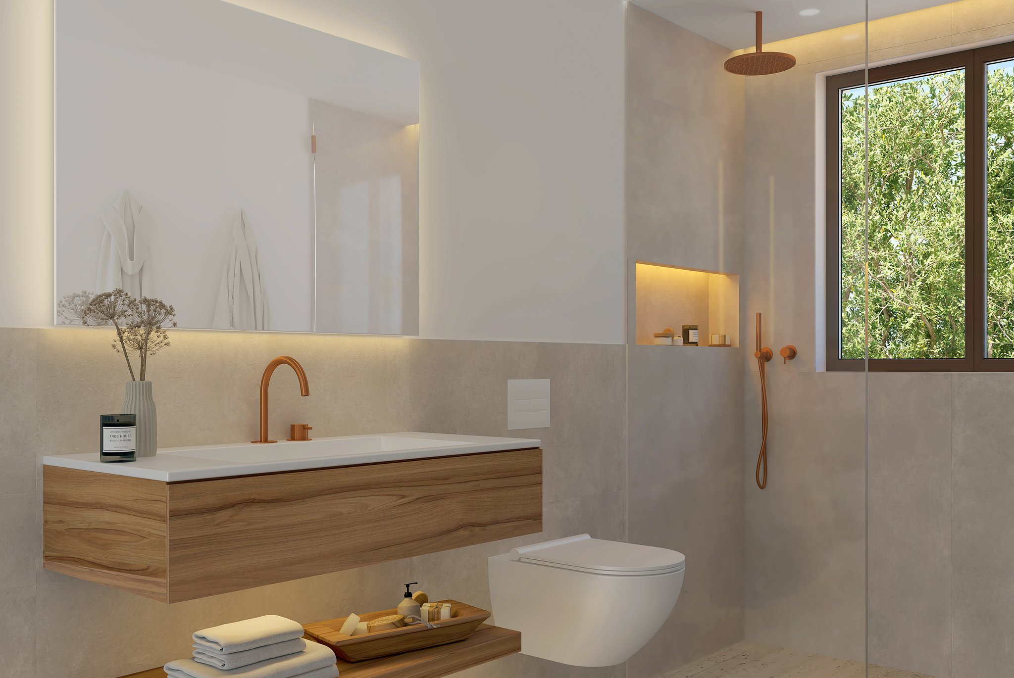 Dette rekkehuset har et boareal på 186 kvadratmeter, fordelt på tre etasjer, med tre soverom, hvorav ett med walk-in-closet, og tre bad, hvorav ett med eget bad. Den åpne planløsningen forbinder kjøkkenet sømløst med stue og spisestue, og med store vinduer, finish av høy kvalitet og et tidløst, rent design skaper det en lys og innbydende atmosfære. Det er også en romslig kjeller for ekstra lagringsplass.