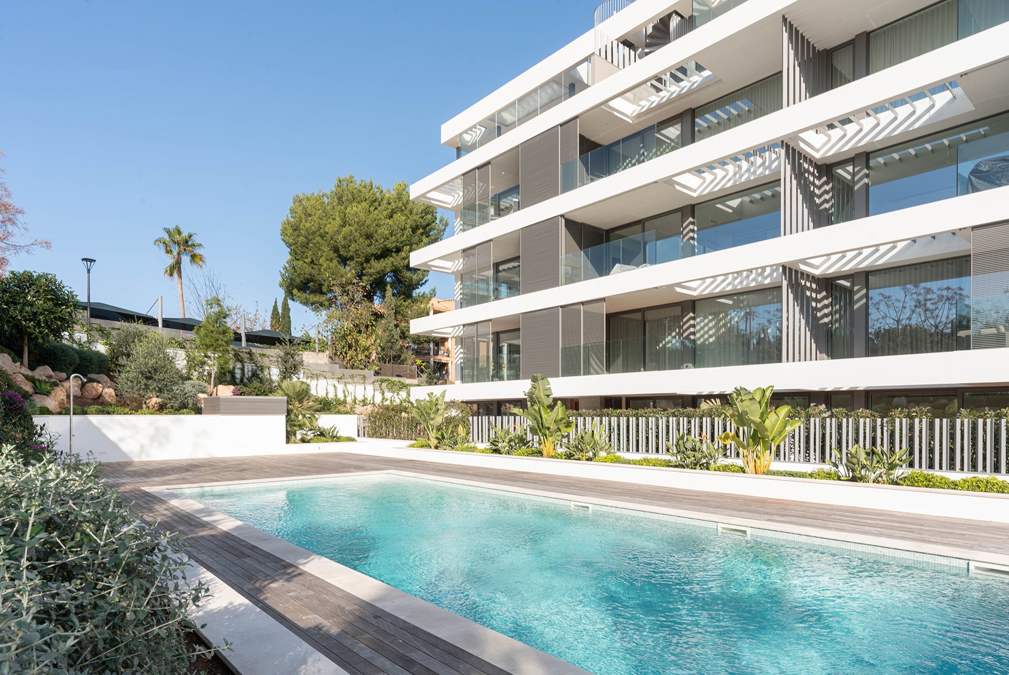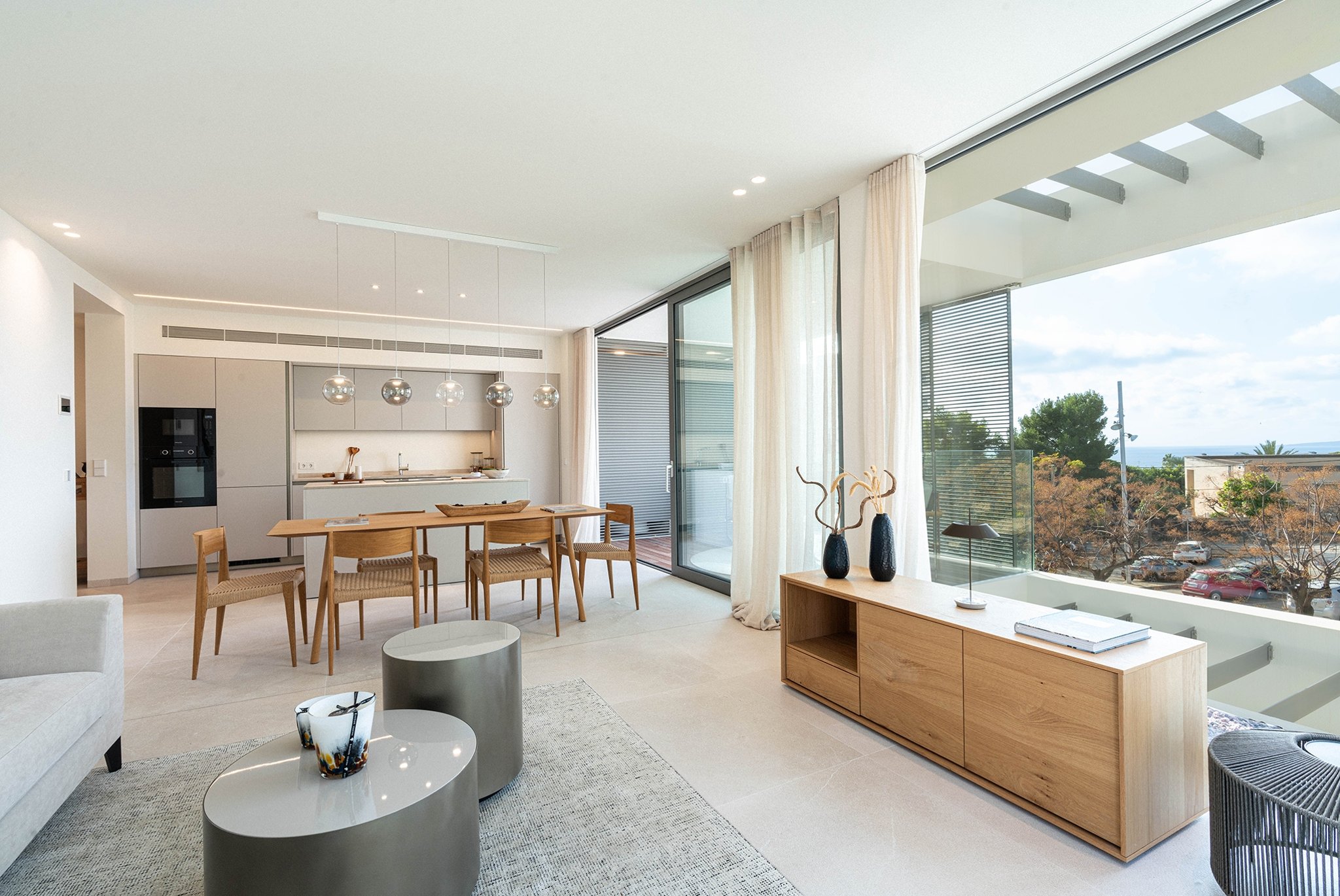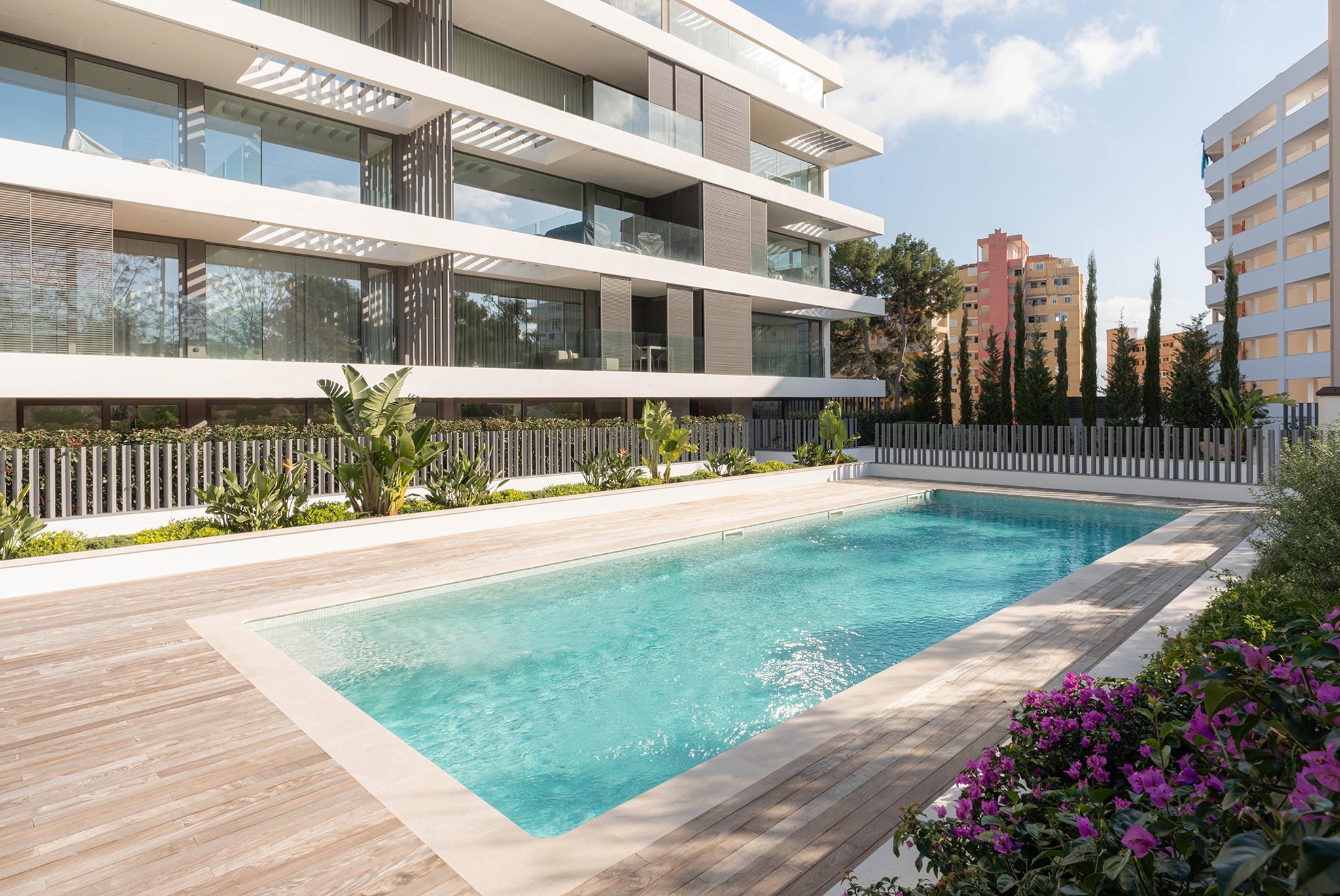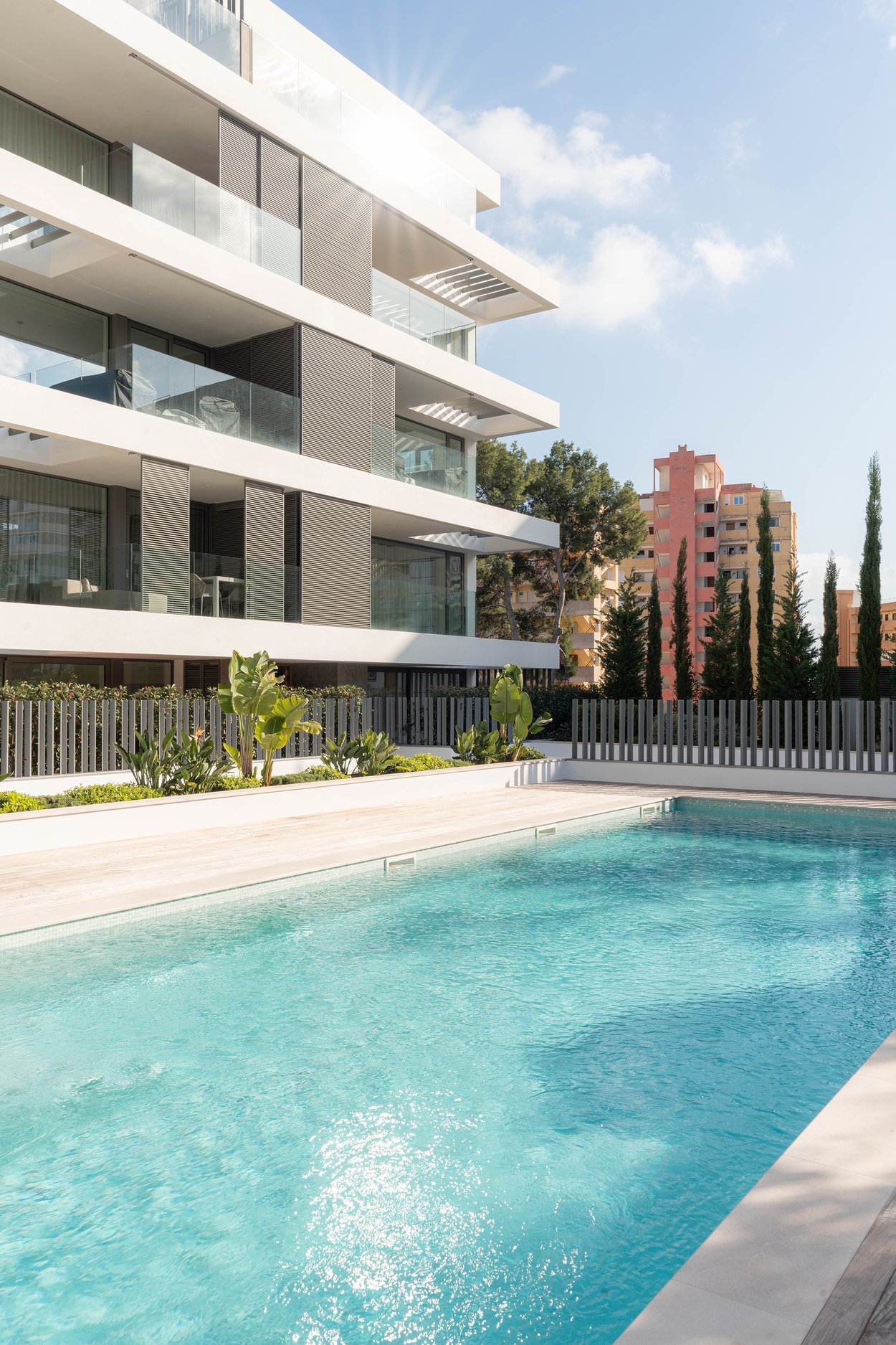 Denne stilfulle og moderne leiligheten ligger i et moderne boligkompleks i den ettertraktede Cala Major. Disse leilighetene har også tilgang til en felles hage og et nydelig svømmebasseng.