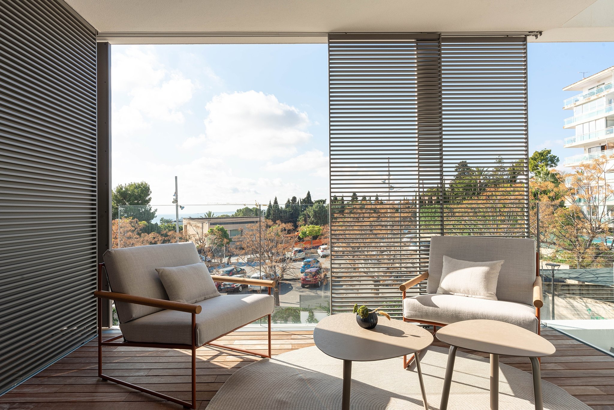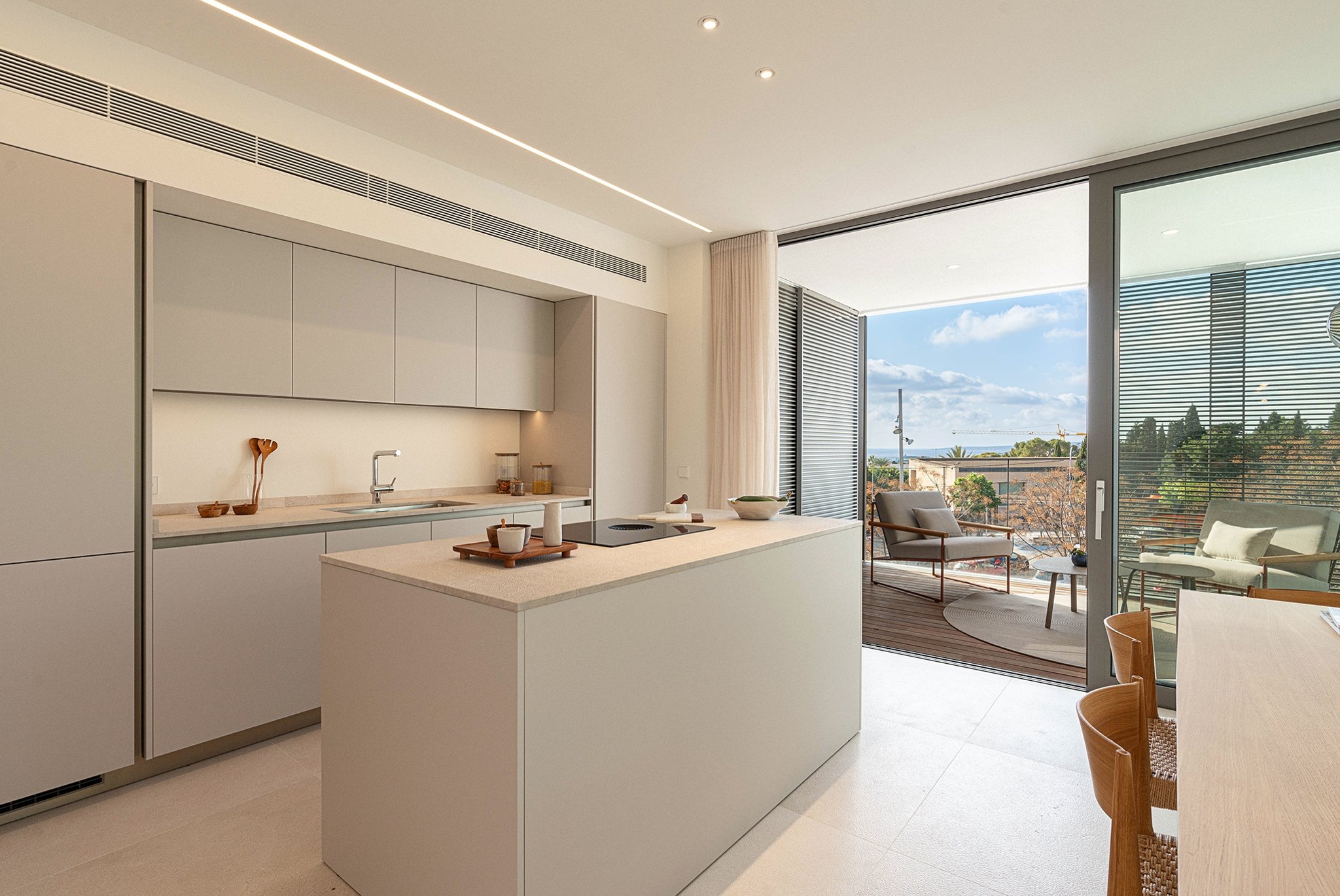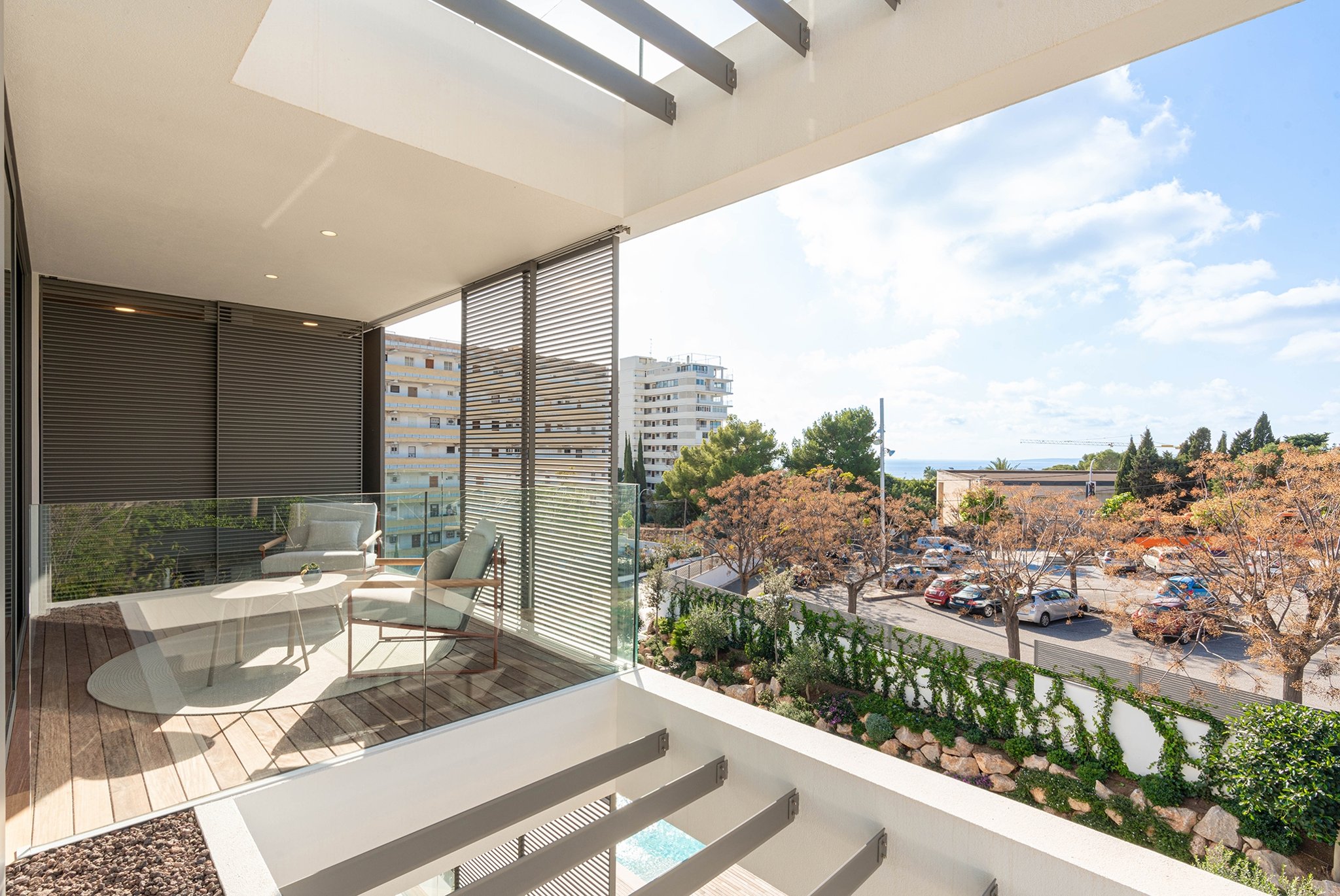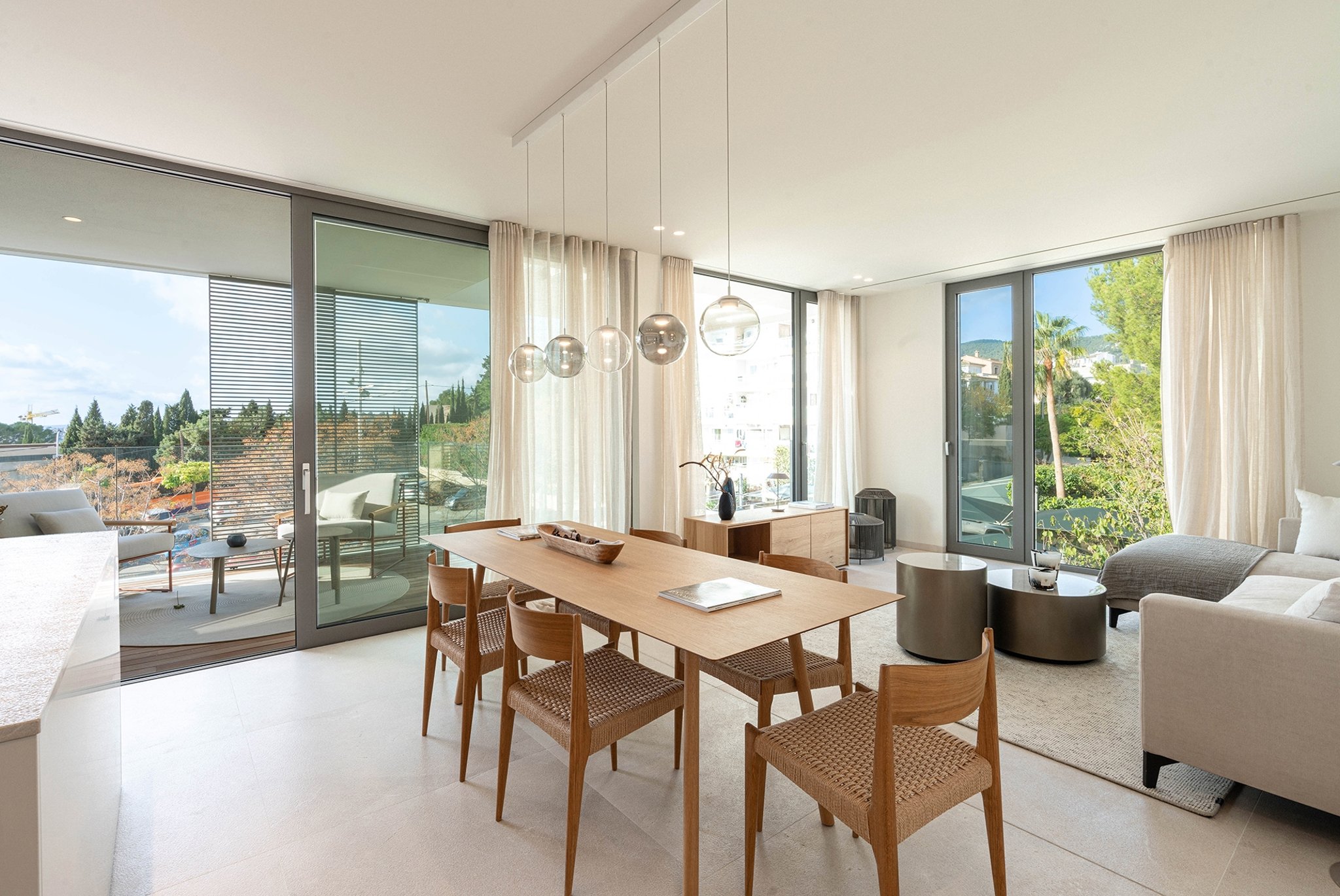 Denne stilfulle og moderne leiligheten ligger i et moderne boligkompleks i den ettertraktede Cala Major. Disse leilighetene har også tilgang til en felles hage og et nydelig svømmebasseng.