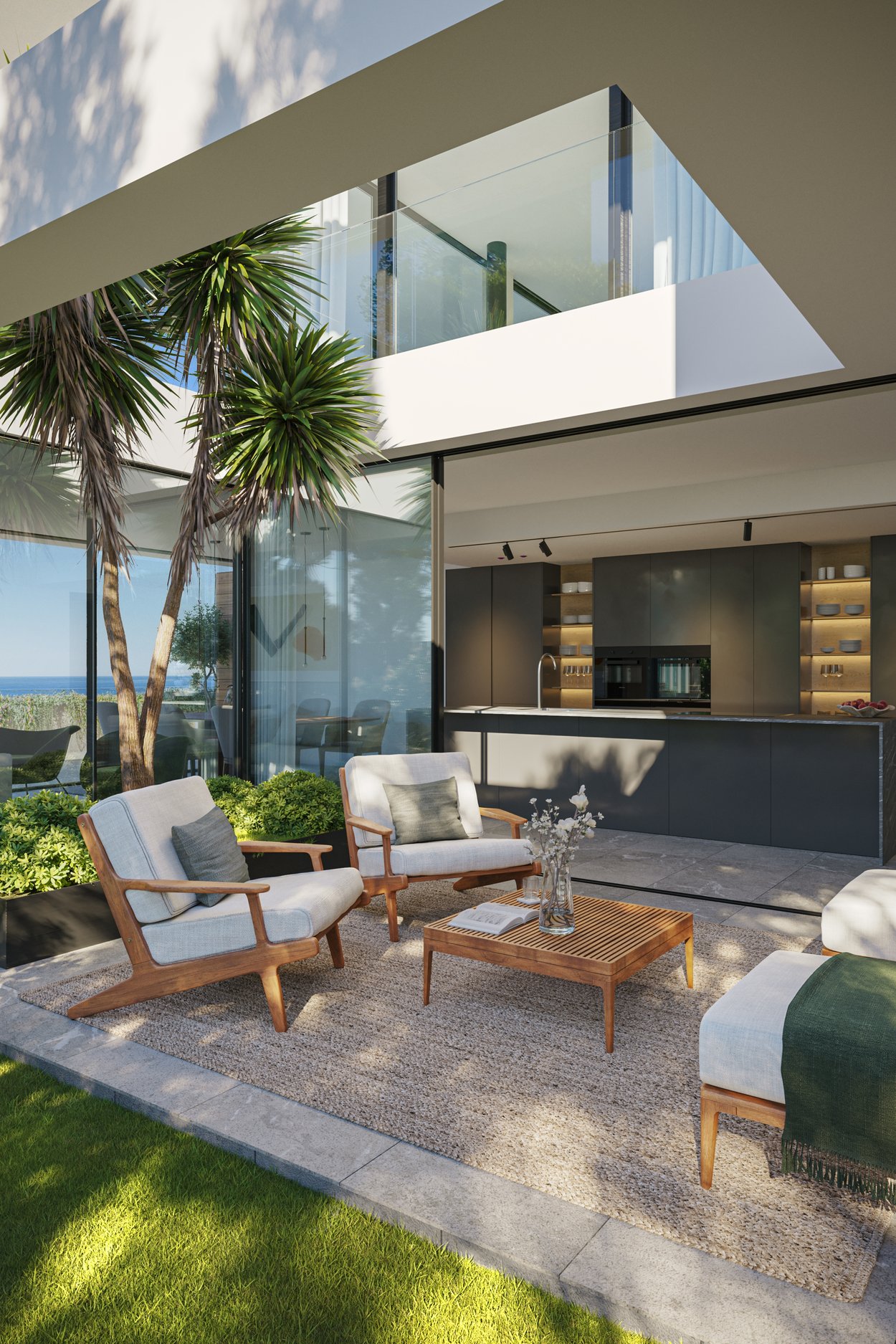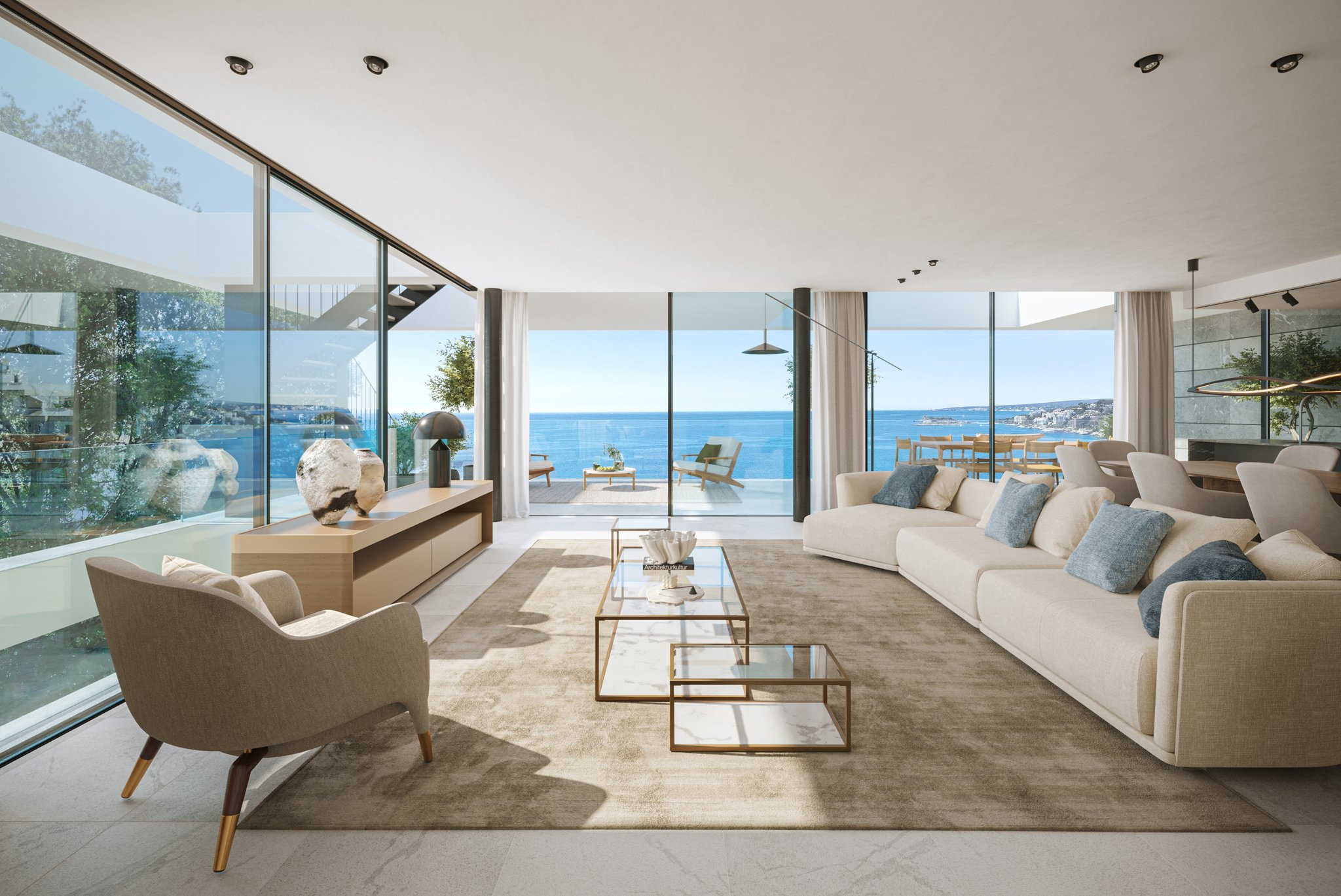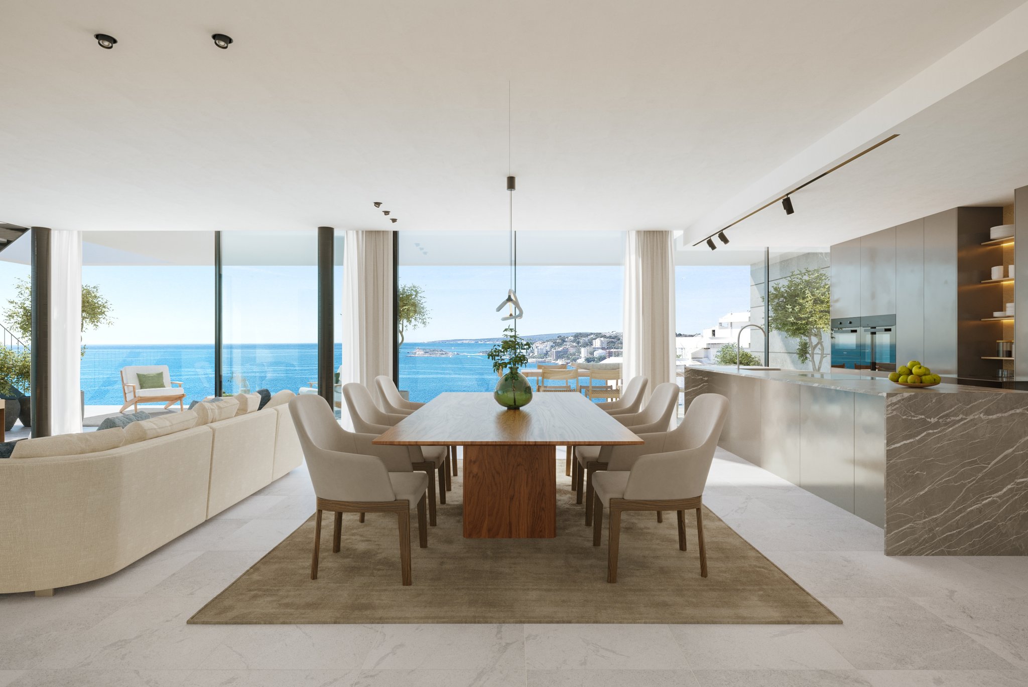 Luksusleilighetene kjennetegnes av sine utsøkte kvaliteter. Hver eneste detalj er nøye utvalgt for å sikre høyeste kvalitet. Interiøret utstråler eleganse med kledning i naturstein og eik. Den åpne stue- og spisestuen går sømløst over i kjøkkenet. I tillegg sørger energieffektivt klimaanlegg, hjemmeautomatisering og designerbelysning for en moderne og funksjonell stil. For å øke komforten ytterligere er hver leilighet utstyrt med en praktisk bod og to parkeringsplasser.